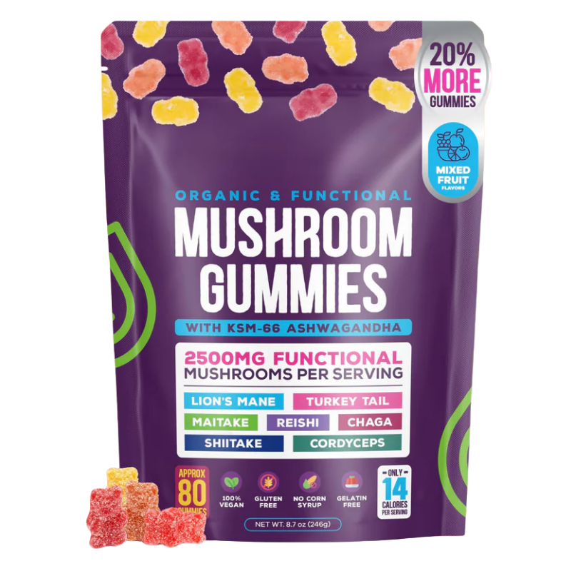 Real fruiting-body extracts (Lion’s Mane, Reishi, Cordyceps) dual-extracted for bioavailability; vegan pectin, low sugar, and 3rd-party tested for purity/potency.